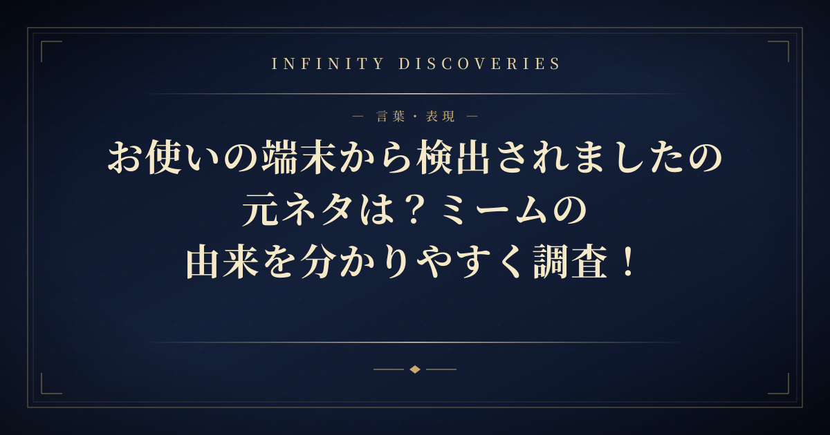 今回はお使いの端末から検出されましたの元ネタや、ミームとしての由来についてお伝えしました。以下に、本記事の内容を要約します。