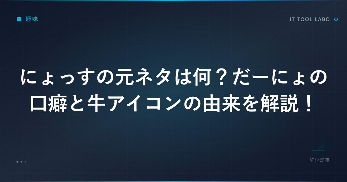 ここまで紹介してきたとおり、にょっすの元ネタは加藤純一ミラー主だーにょさんの挨拶であり、牛の絵文字はそのアイコンに由来する形でセット化された表現です。短い挨拶の裏に、配信文化のひとコマがしっかりと刻まれていることが分かります。