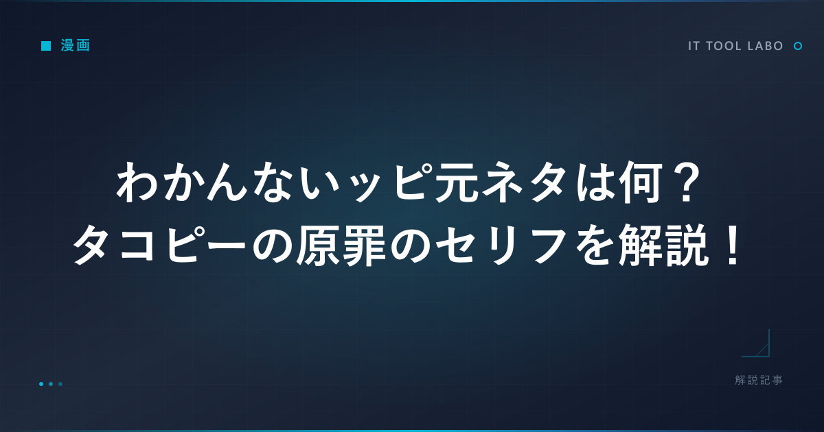 この記事では、わかんないッピの元ネタとなった漫画の情報、セリフが生まれた作中シーン、ミーム化した経緯、そして実際の使い方まで、わかりやすく整理して紹介します。