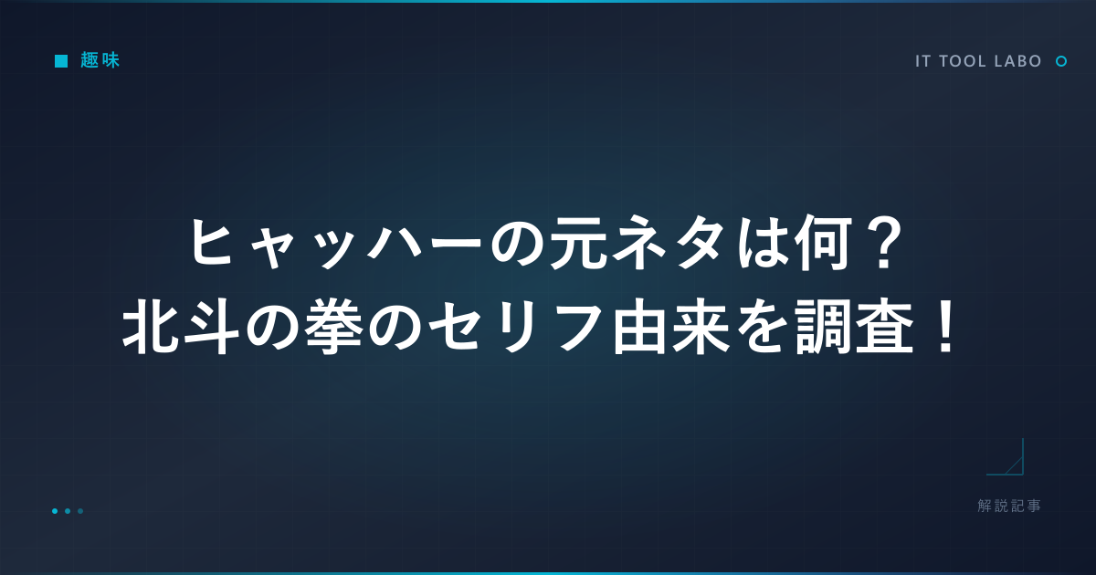 ヒャッハーの元ネタは漫画『北斗の拳』のモヒカン悪党たちで、間違いありません。ただし正確には原作には登場せず、アニメやパチスロ、パロディ作品を通じて広まった表現です。源流をたどると映画『マッドマックス』シリーズや、世紀末を描くSF文化全体に行き着きます。