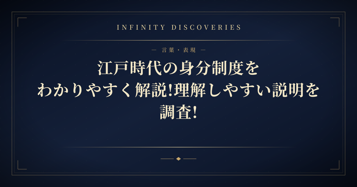 一般的にイメージされる支配被支配の関係だけでなく、経済的な力関係や文化的な側面にも光を当てていくことが重要です。当時の人々が自分の身分をどのように捉え、その中でどのように生きていたのかを知ることで、江戸時代という時代の解像度がぐっと上がることでしょう。ここからは、具体的な身分の内訳やその実態について、6つの視点から順に見ていきましょう。