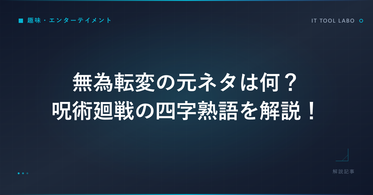 呪術廻戦に登場する真人の術式「無為転変」は、その響きと禍々しい効果から多くの読者の印象に残っている言葉です。聞き慣れない四字熟語のため、元ネタが何なのか気になっている方も多いのではないでしょうか。
