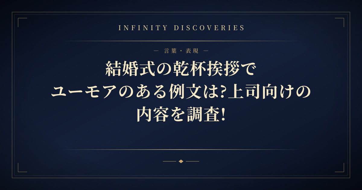 今回は結婚式の乾杯挨拶でユーモアのある例文を上司が使う際のポイントについてお伝えしました。以下に、本記事の内容を要約します。