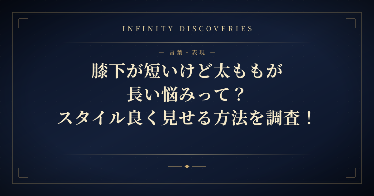 今回は膝下が短くて太ももが長いという悩みについてお伝えしました。以下に、本記事の内容を要約します。