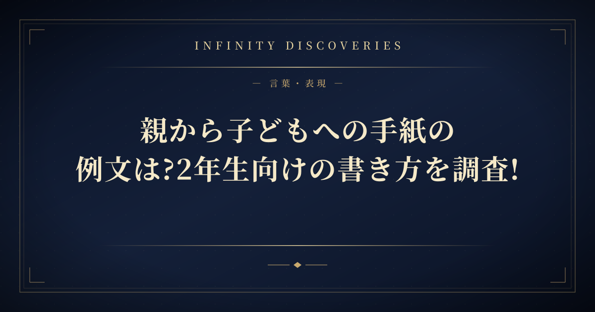 この記事では、親から子どもへの手紙の例文や2年生の発達段階に合わせた書き方のポイントを詳しく解説していきます。具体的な文例や、感動を呼ぶ構成の工夫、そして男の子や女の子それぞれの特性に配慮した表現方法など、幅広く情報を調査し、まとめました。お子様への温かい思いを形にするためのヒントが、きっと見つかるはずです。
