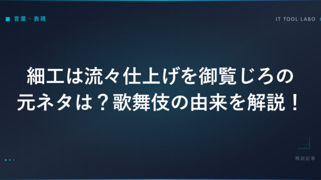 細工は流々仕上げを御覧じろの元ネタは?歌舞伎の由来を解説!